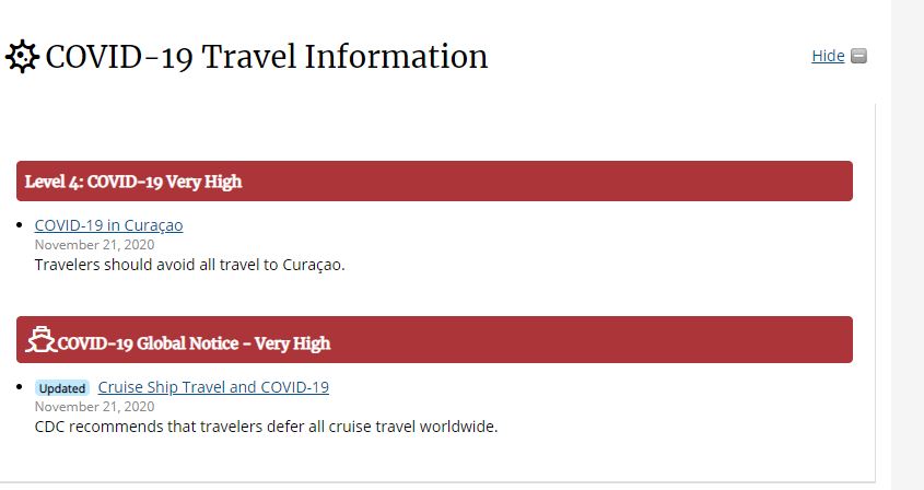 The travel advice appears just before the first flights from Miami, Canada, New York and New Jersey to Curaçao. These are scheduled in the first and second week of December.