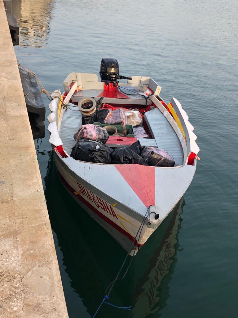 WILLEMSTAD - A Metal Shark interceptor of the Coast Guard intercepted a boat with contraband in the early morning of July 15, 2020 near Curaçao. On the shore radar, the Rescue Coordination Center (RCC) of the Coast Guard observed that a boat sailing from Curacao met with a boat that had come from Venezuela. After this meeting, a boat returned to Venezuela at high speed and the other boat attempted to sail unseen to Curaçao. The RCC then directed a Metal Shark from the Coast Guard support point Curacao to that contact. The Metal Shark crew found a small local boat with four people (2 CUR, 1 COL, 1VEN) and 11 packages on board. Narcotics and firearms were found in the packages. The four suspects and the contents of the packages have been transferred to the police. The four suspects have been quarantined in the SDKK.