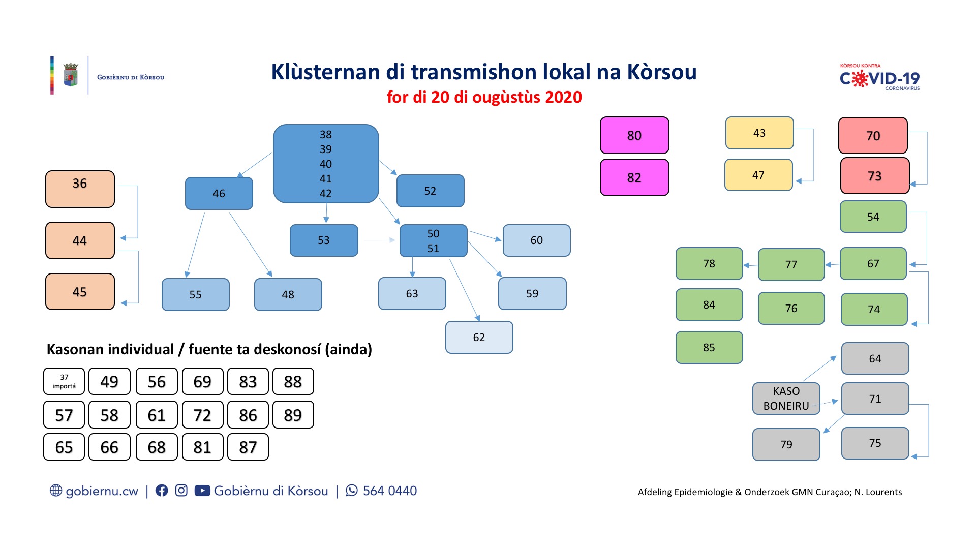 WILLEMSTAD - During a recent press conference, epidemiologist Dr. Izzy Gerstenbluth indicated that his department gets a lot of questions about clusters and links to previous cases. The doctor explained with a graphic.