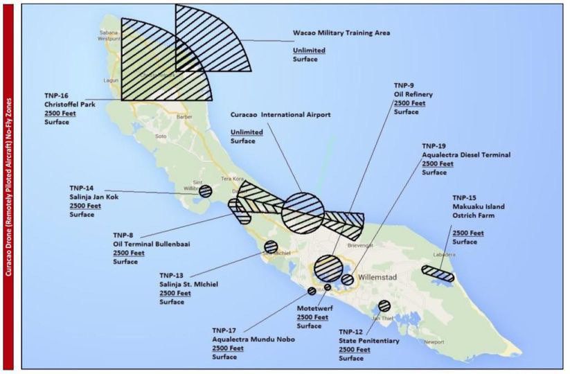 The No-Fly Zones established by Curaçao Civil Aviation Authority.