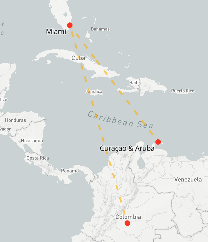 Part of that gold goes via Colombia, Aruba and Curaçao to the United States. The gold that runs through Curaçao is brought in via small boats and private aircraft and then goes to the largest gold market in the US: Miami.
