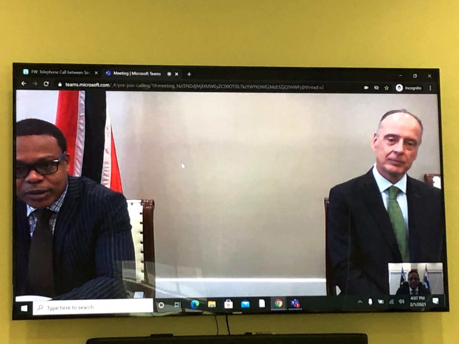 WILLEMSTAD, PORT OF SPAIN - On Monday, February 1, 2021, the Prime Minister of Curaçao, Mr. Rhuggenaath, had a meeting with the Minister of Foreign and CARICOM Affairs of Trinidad & Tobago, Dr. Amery Browne.