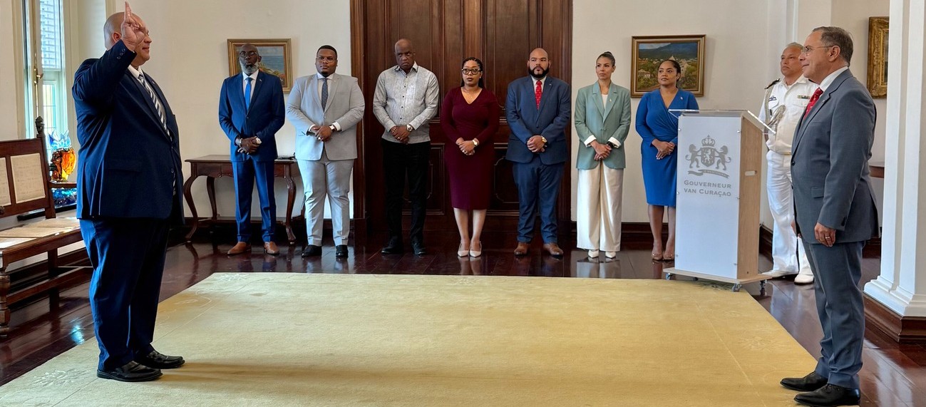 WILLEMSTAD — Tyron Boekhoudt was officially sworn in on Wednesday as Minister of Health, Environment and Nature (GMN). The swearing-in ceremony took place in the Palace of the Governor and was conducted by Governor Mauritsz de Kort, Prime Minister Gilmar Pisas announced.