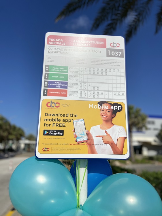 ABC Busbedrijf was glad to help upon receiving this request and CAP is immensely grateful for the great support received. The opening of this additional, customized bus stop serves simultaneously for the launch of the ABC Busbedrijf app, which contains valuable passenger information and CAP is honored to be part of this as well. The bus stop at the Curaçao International Airport also has the premiere of being the first to be having the route timetable placed at the back of the bus stop sign. Passengers will thus have accurate information on the time and route and planning their trip will be much easier.