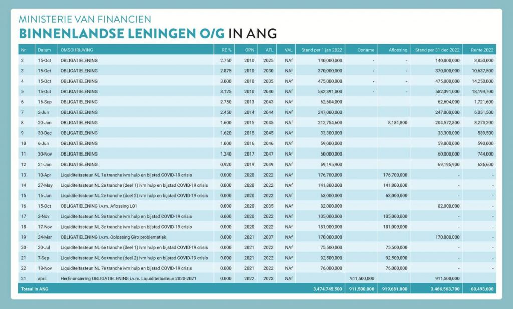 The table below shows, among other things, the interest rates of the (bond) loans taken out by the Country. The bond loans up to and including 2014 have a higher interest rate than the current interest on Dutch bonds (last known interest rate is 0.5%). It is therefore not unreasonable to assume that a refinancing of the bond loans up to and including 2014 will create more financial scope for making investments from own resources.