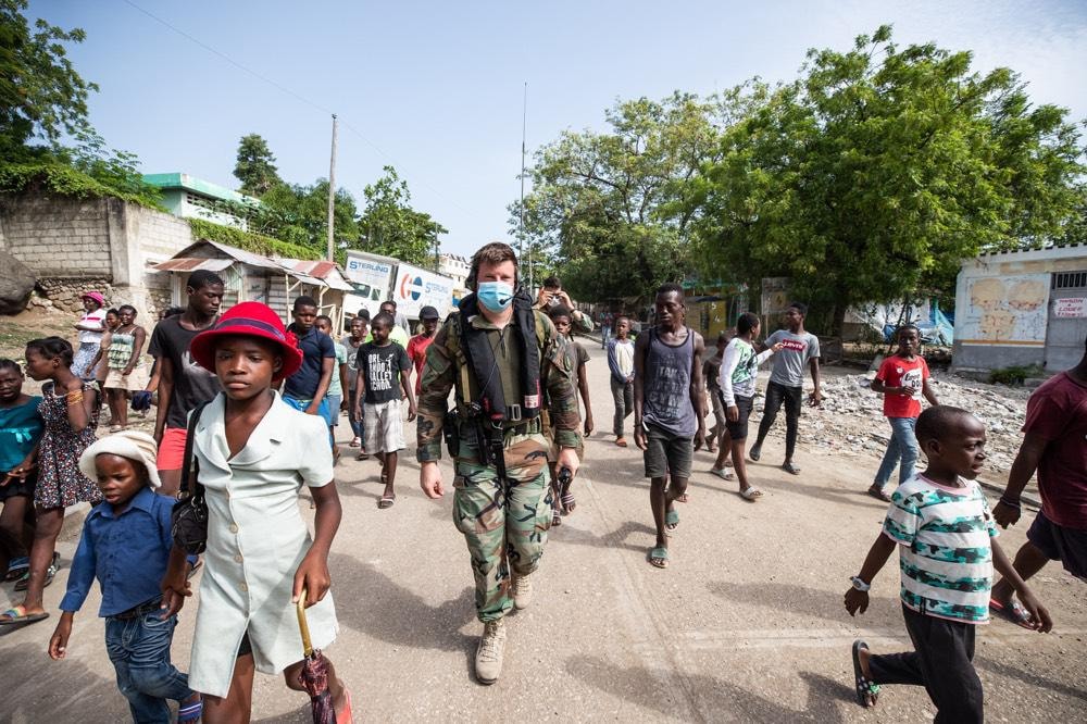 The reconnaissance was searching for a suitable site for an emergency hospital. The NH-90 conducted the reconnaissance together with marines and found a suitable spot in Aquin.