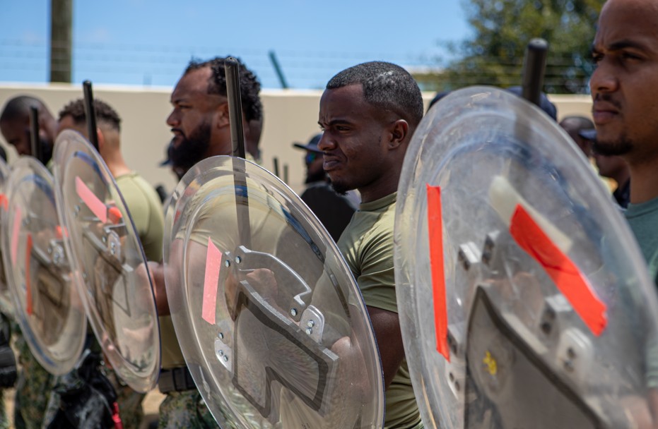 ORANJESTAD - The Aruban and Curaçaoan military personnel (CARMIL) are training this week on Aruba together with the Mobile Unit (ME) of the Aruba Police Force (KPA) and the K9 unit of the KIA (Correctional Institute Aruba). The exercise focuses on de-escalation actions, during civil unrest, also known as ("Beteugelen van Woelingen" (BVW), Curbing unrest, and prepares the Caribbean military and security partners for responding to disturbances of public order.