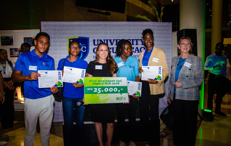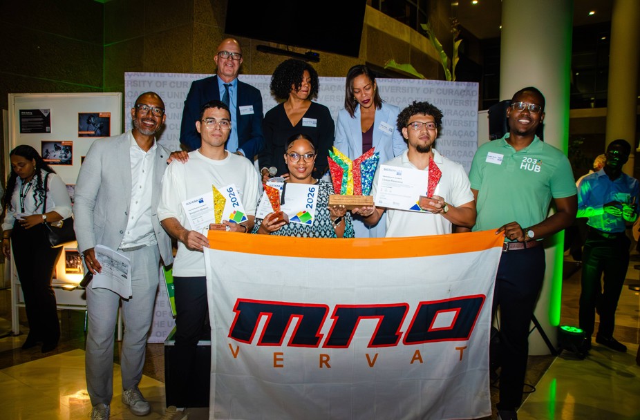Student teams presented solutions developed in partnership with major local organizations, including Aqualectra and other private and public sector partners. This year’s top recognition went to MNO Vervat for its Tafelberg Challenge, while another winning team emerged from the UoC Green Campus Challenge, supported by MCB Bank, which also contributed to the development of the university’s Impact HUB.